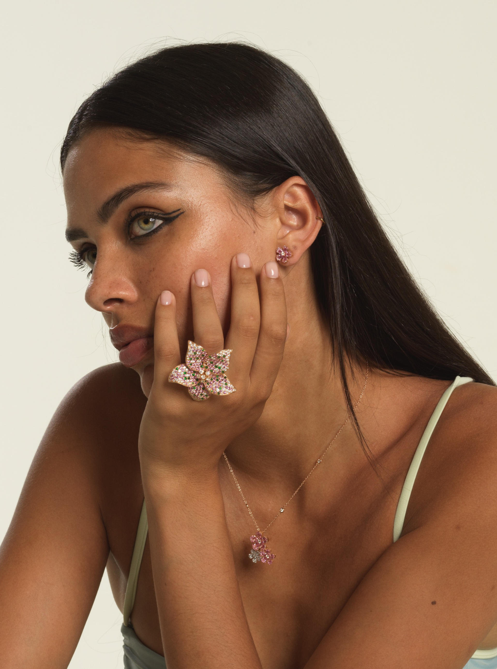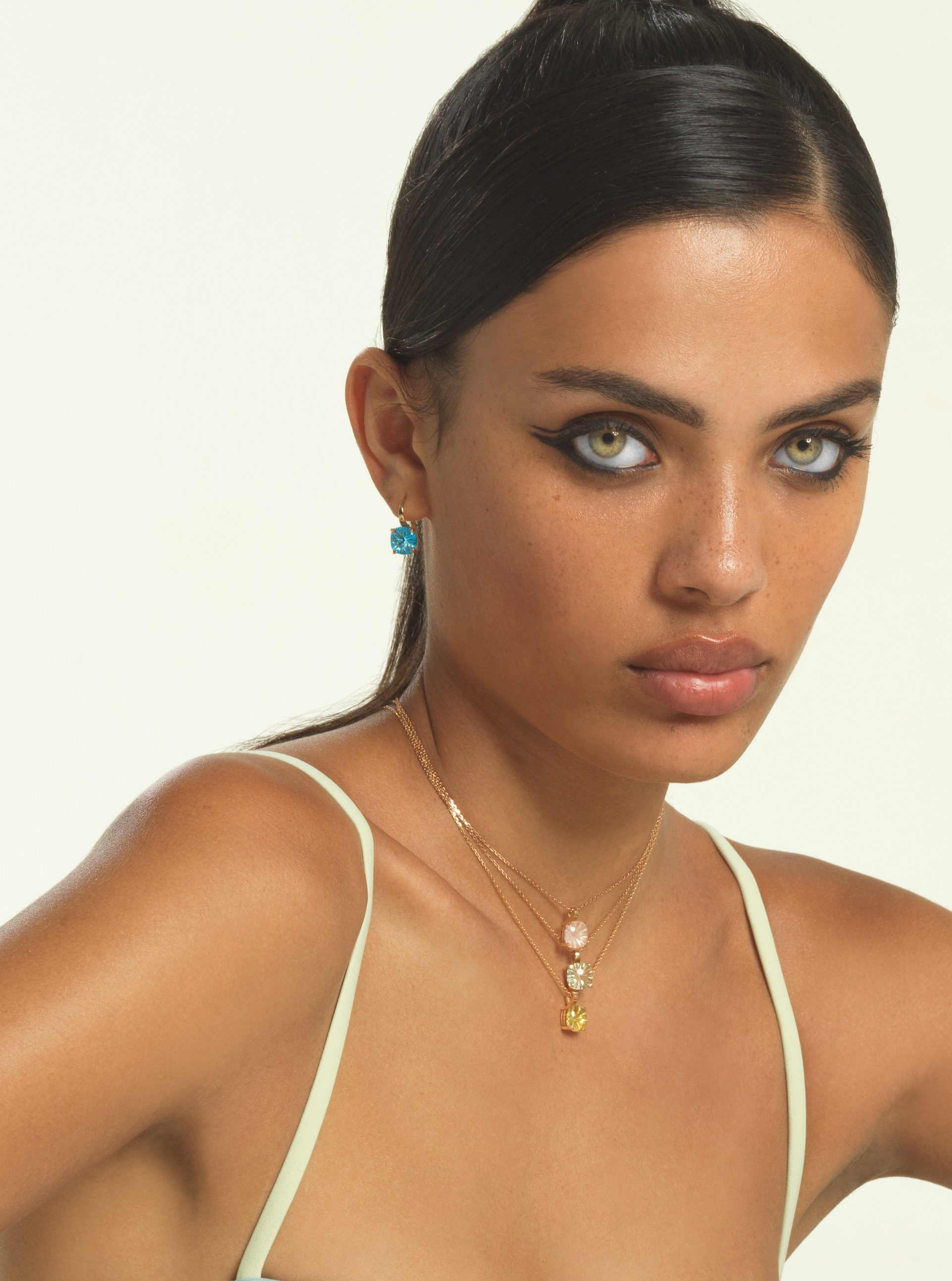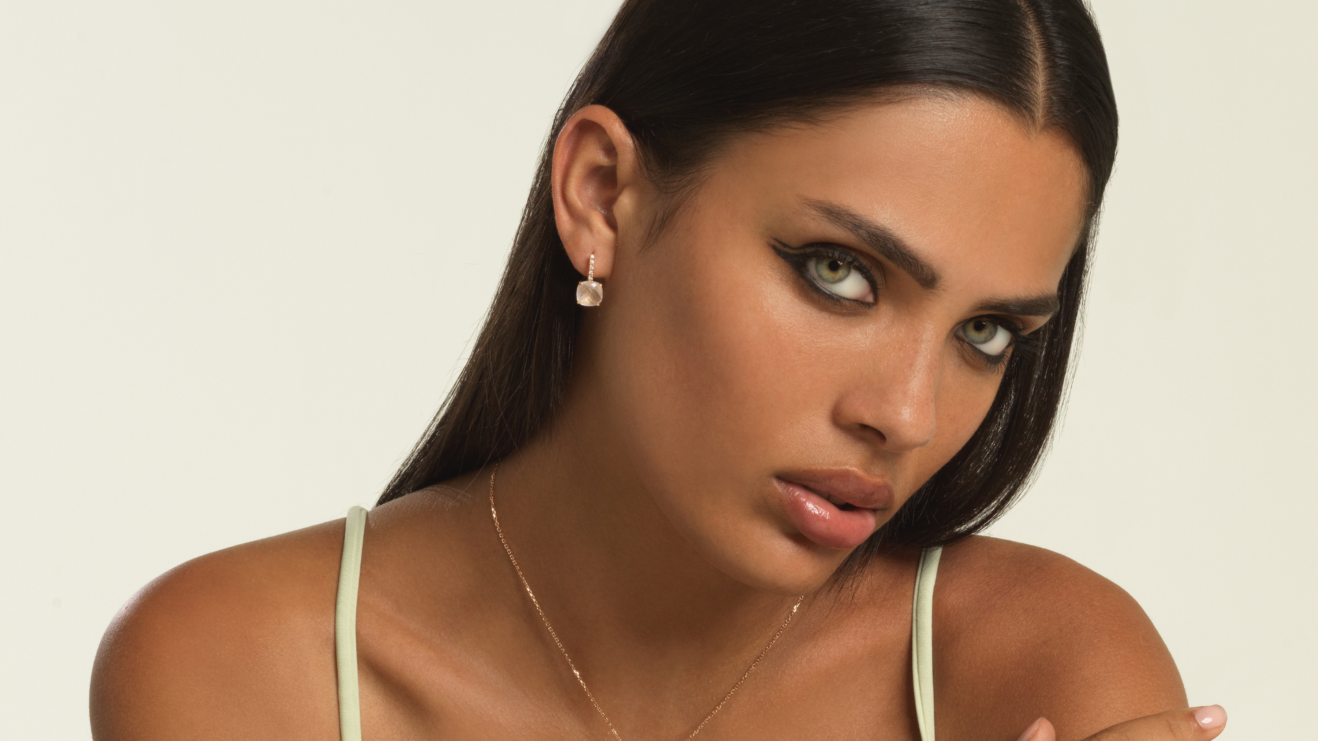 Les modèles puces, avec leur design discret - géométrique ou floral - ainsi que les emblématiques dormeuses en or Poppy, insufflent une élégance naturelle à chaque tenue. Parées d’or et de pierres précieuses, les mini-créoles, quant à elles, révèlent le visage avec une audace subtile. Autres modèles phares de la Maison, les boucles d’oreilles pendantes dansent à chaque mouvement, captant la lumière pour offrir une allure gracieuse et distinguée.