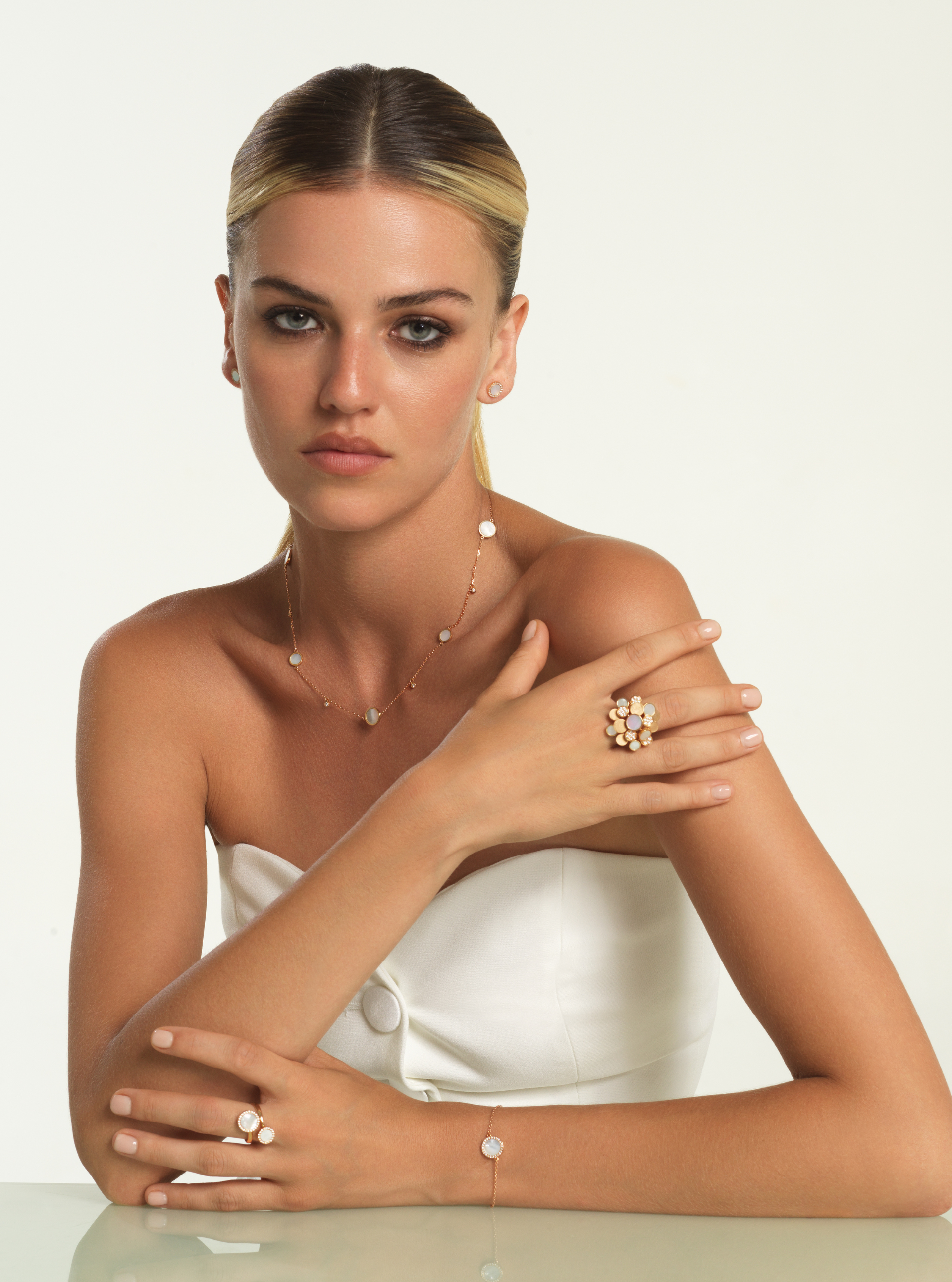 White Mother-of-Pearl | Diamonds, Rose gold