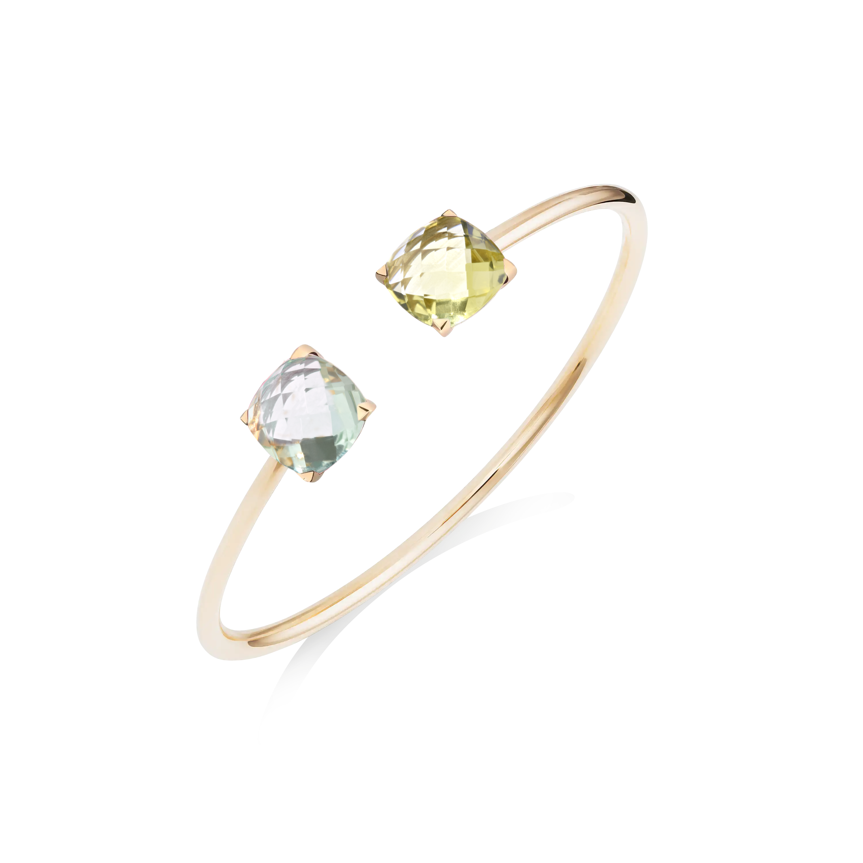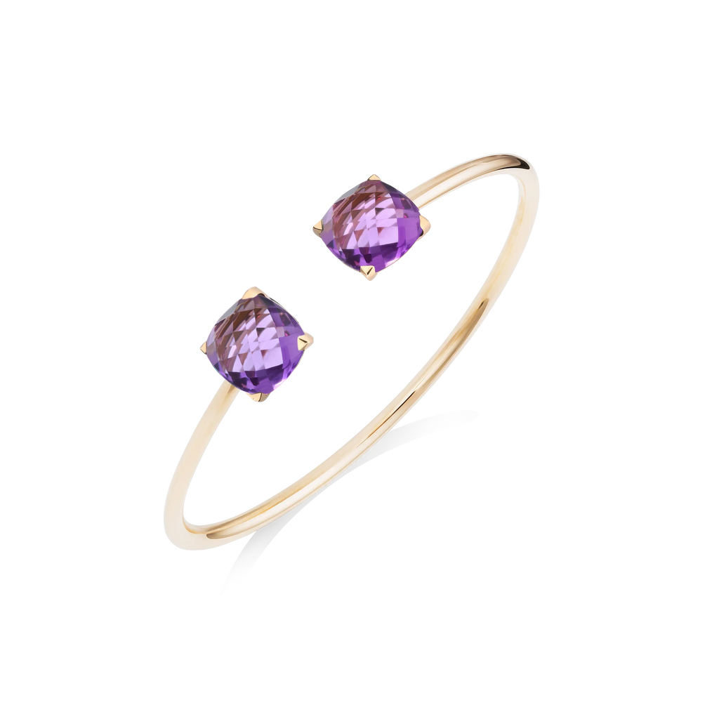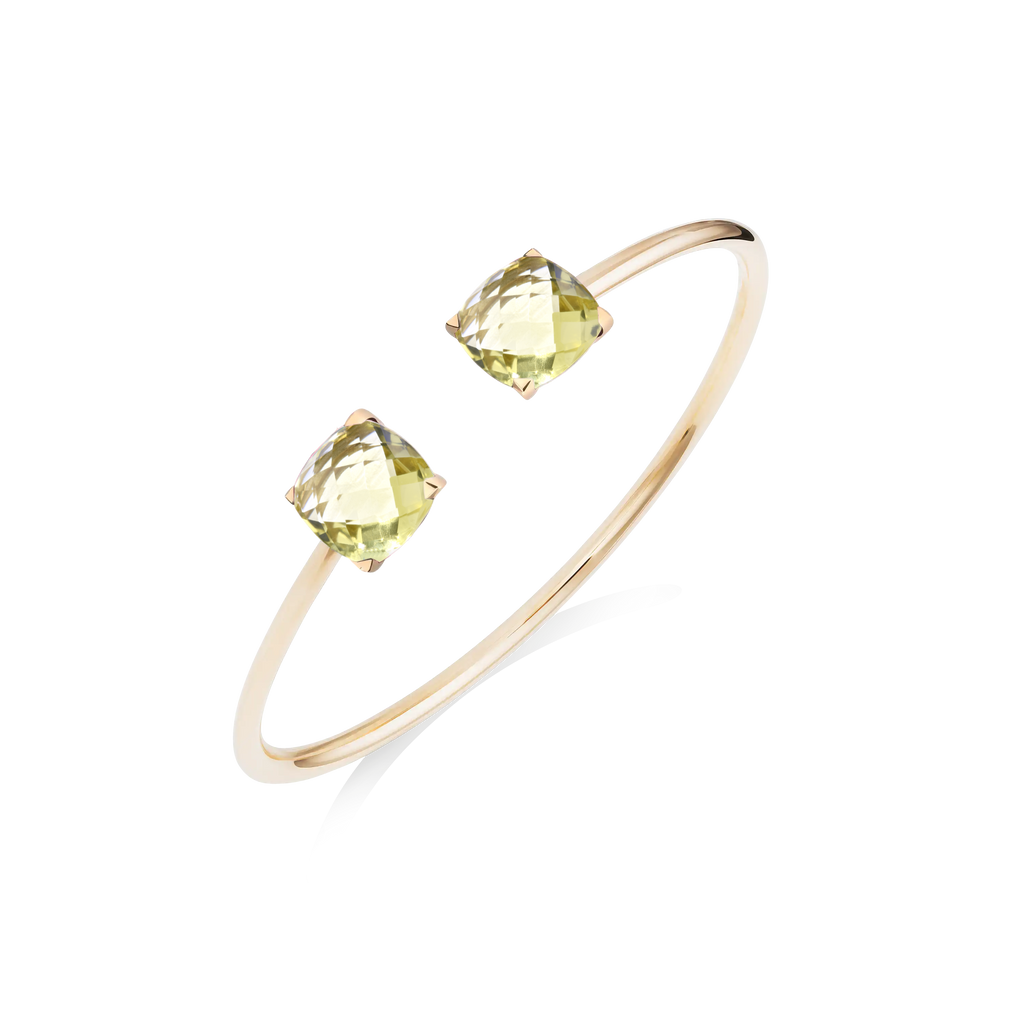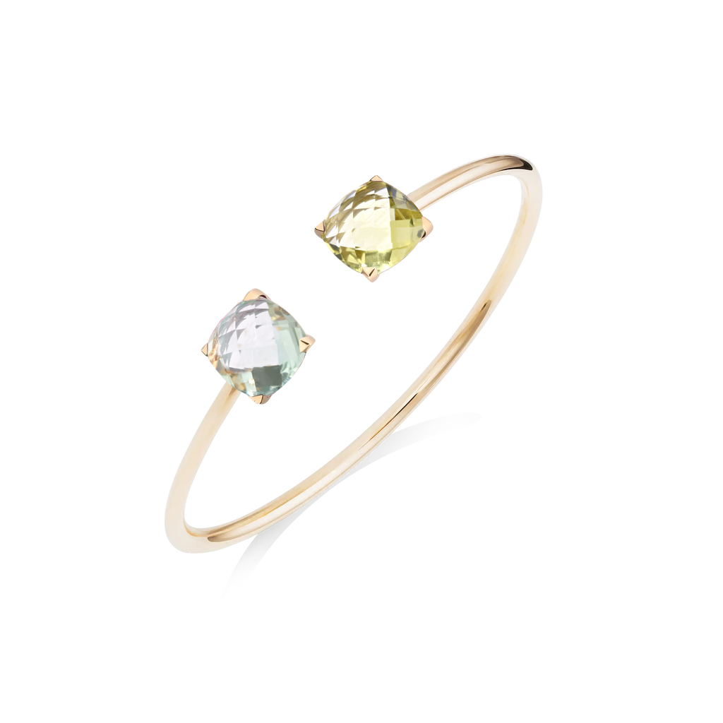 Le Bangle Poppy Blue en or rose, Topaze London Blue et Topaze Sky Blue est également disponible en or blanc et en or jaune.