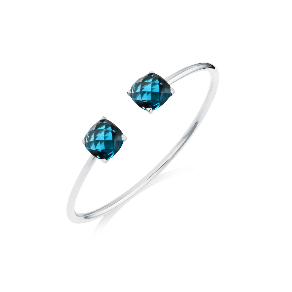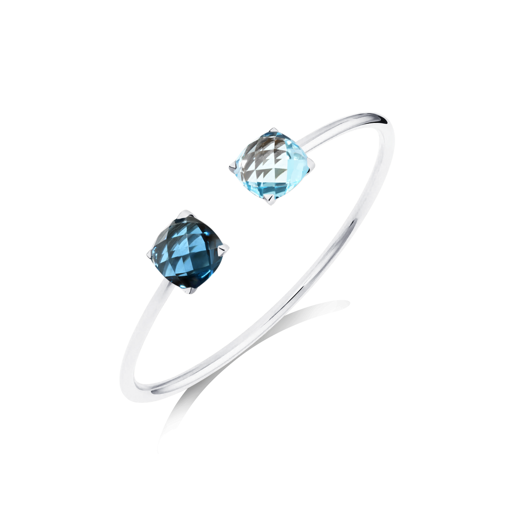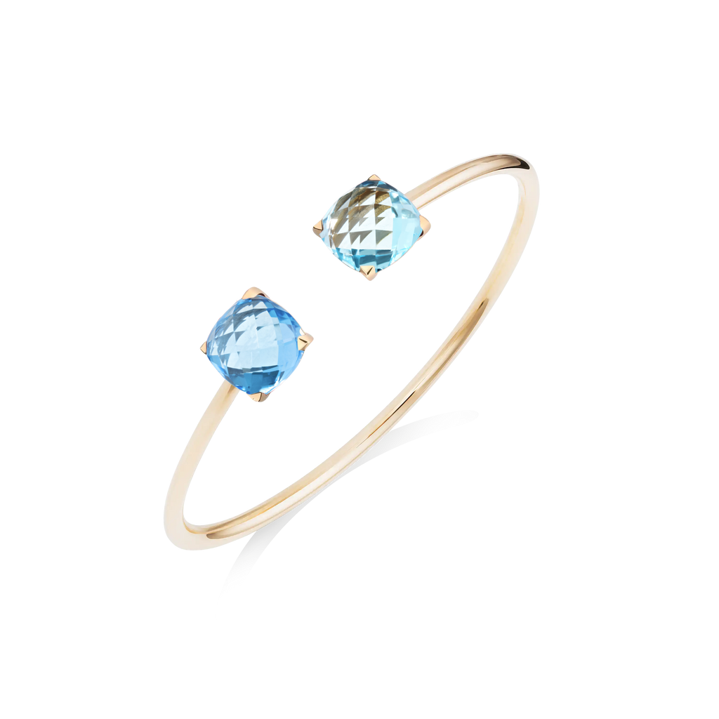 Descriptif : Bangle Poppy Blue en or rose, Topaze London Blue et Topaze Sky Blue